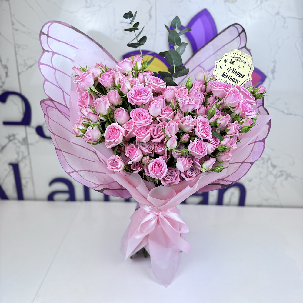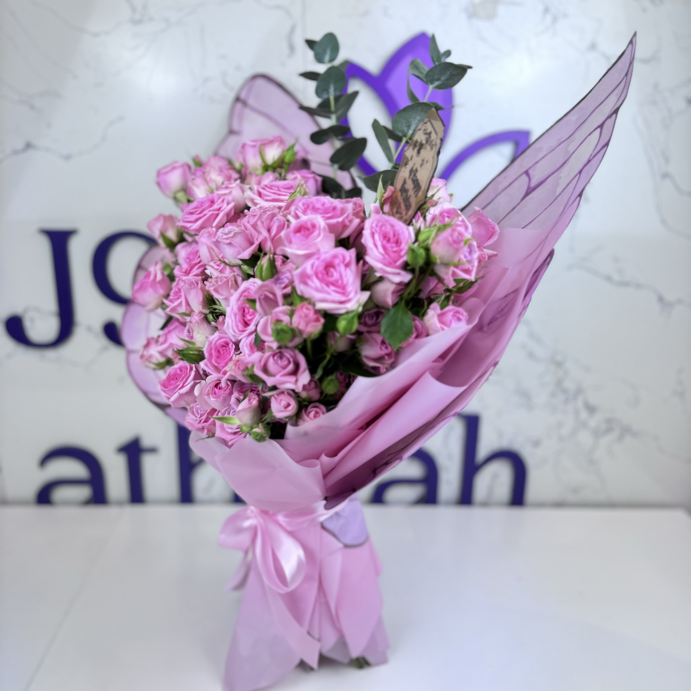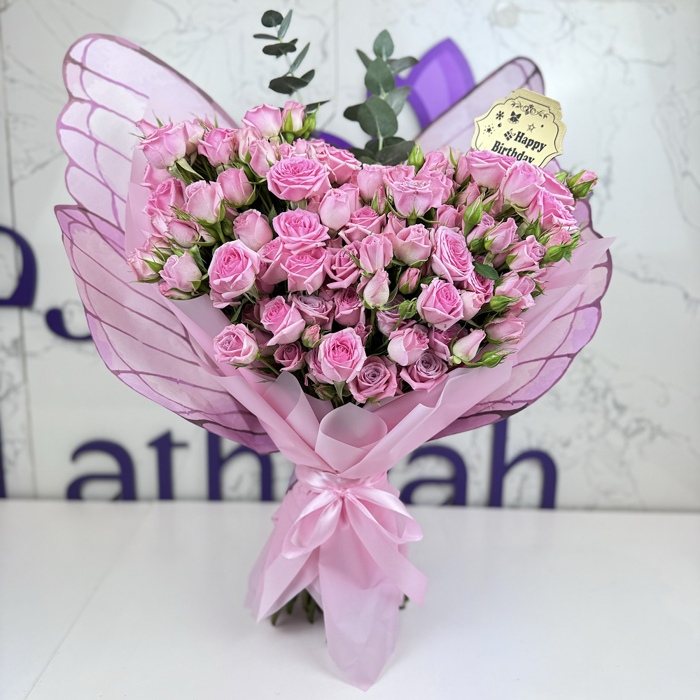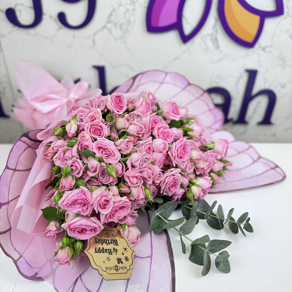 Celebrate the most beautiful occasions with the "Pink Butterfly Heart" bouquet, which combines pink roses in a charming heart arrangement, wrapped in transparent butterfly wings that add a touch of magic and femininity. It is the perfect gift for a birthday full of love and beauty.
