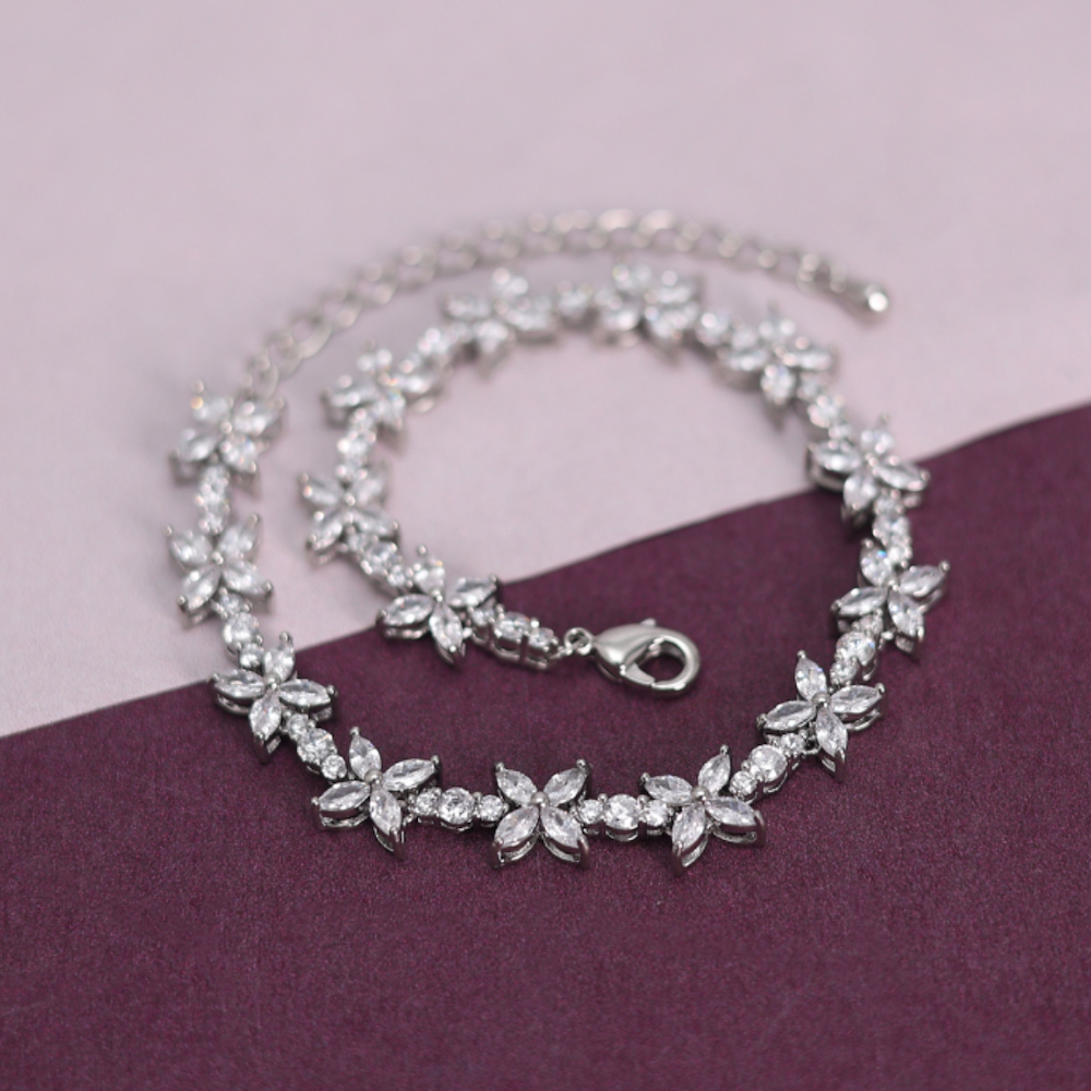 A distinctive modern bracelet, plated with 18K gold and studded with luxurious zirconium "artificial diamonds" to emulate diamond designs.