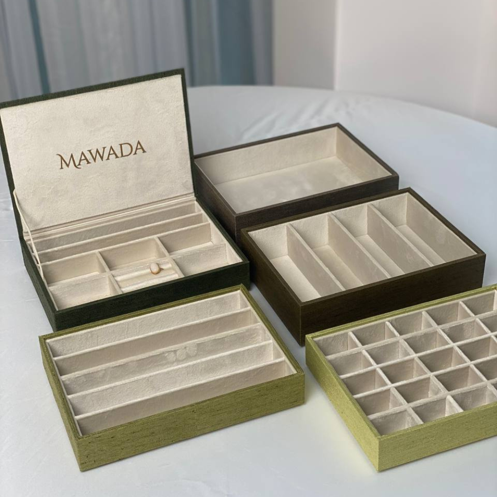 A luxurious 5-tiered jewelry box set in shades of green, arranged to make gifting more special.