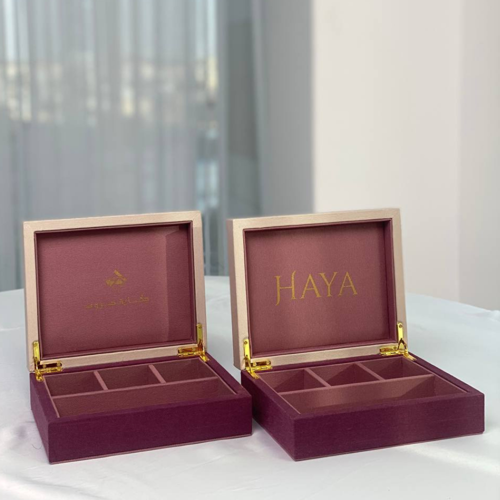 A mini Agate jewelry box from the Quartz collection, covered in luxurious burgundy fabric with dark pink and beige accents. Note: only one box comes with the gift.
