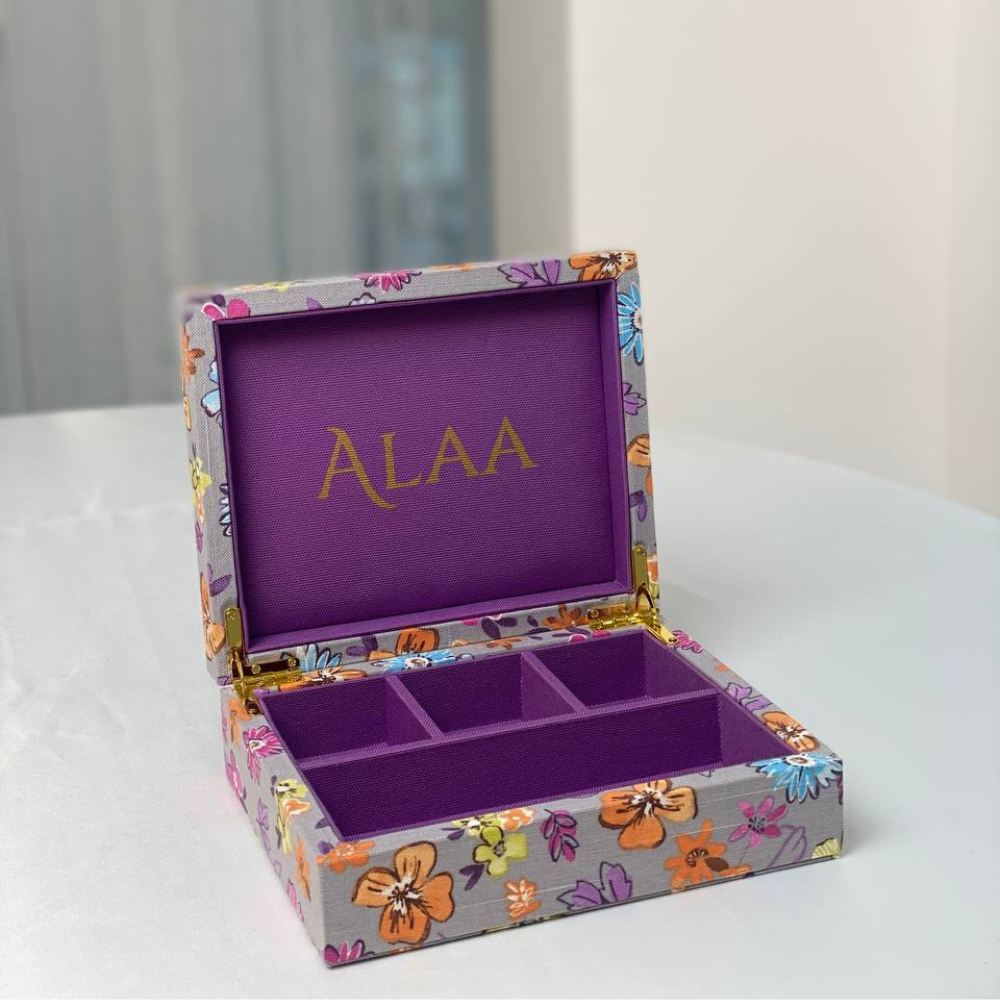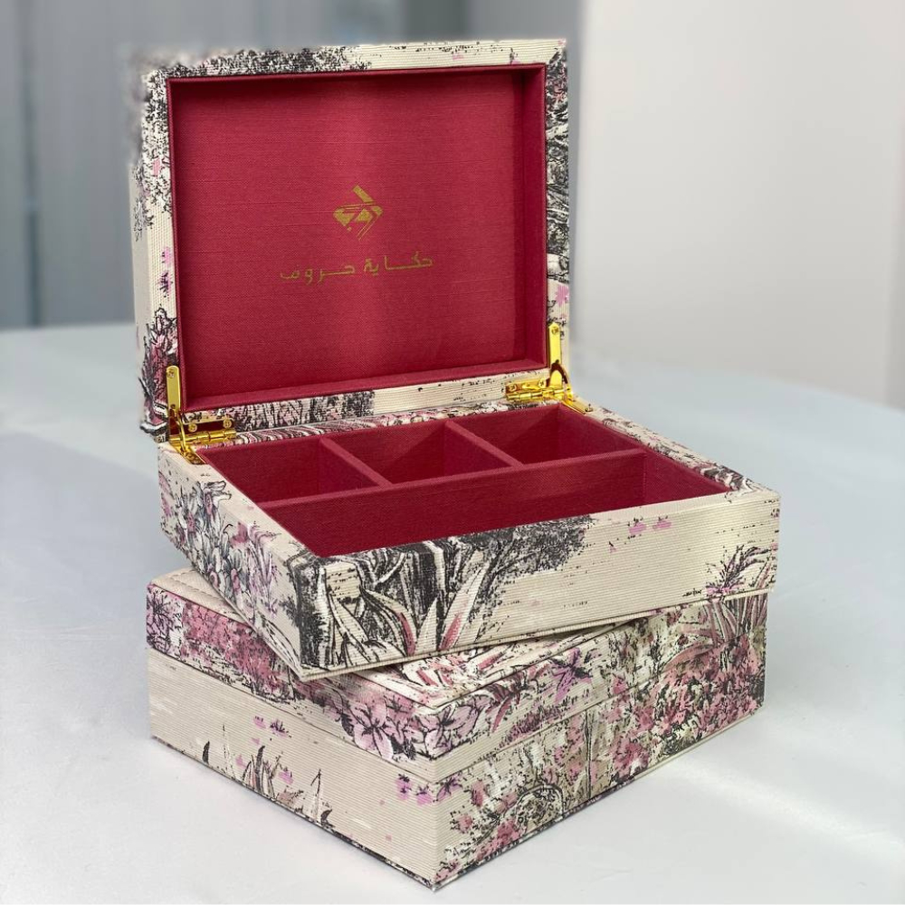 A mini Tourmaline jewelry box from the Quartz collection, adorned with luxurious mastic in shades of off-white and black with an elegant pink touch. Note: only one box comes with the gift.